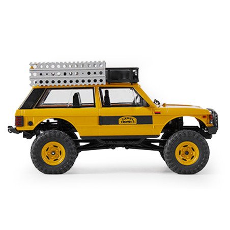 The FMS 1/24 FCX24M Range Rover First Generation RTR (Ready-To-Run), featured in the distinctive yellow Camel Trophy livery, is a micro-scale replica of the iconic classic luxury off-roader. Built on the advanced FCX24M chassis, this model offers a unique blend of collector detail (ABS hard body, simulated interior) and technical crawling performance thanks to the remotely controlled two-speed transmission and high-quality suspension. It comes complete and ready for adventure.