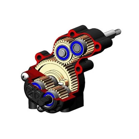 * As engrenagens cónicas das caixas de velocidades dianteira e traseira são feitas de metal em pó de elevada relação de aço. A caixa de eixo reta de uma só peça é pequena, aumenta a distância ao solo e é fácil de manter e desmontar mais tarde.